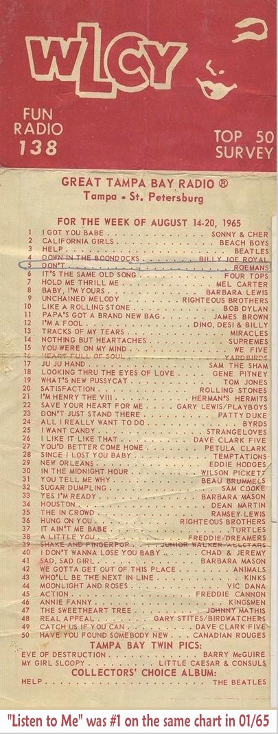 ABC-Paramount released the first Roemans single, "Don't" just before the British trip and it became a Top Ten item on Florida radio stations. The tour itself brought star status to the Roemans. To help thing along a little, their recording with Tommy Roe, "Diane From Manchester Square," was released in England on the day of their arrival. They were stoppers wherever they went, were invited to stay over an extra week in Britain to do TV Shows on their own and invited to return later in the year for another tour.