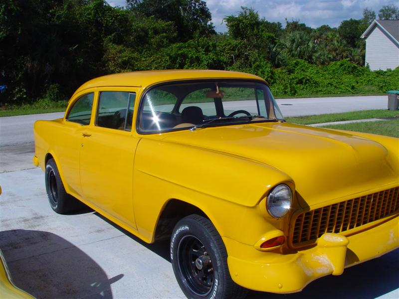1955 Chevy, 2 door post, with a 1972 corvette engine, yellow exterior paint