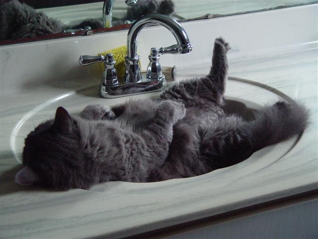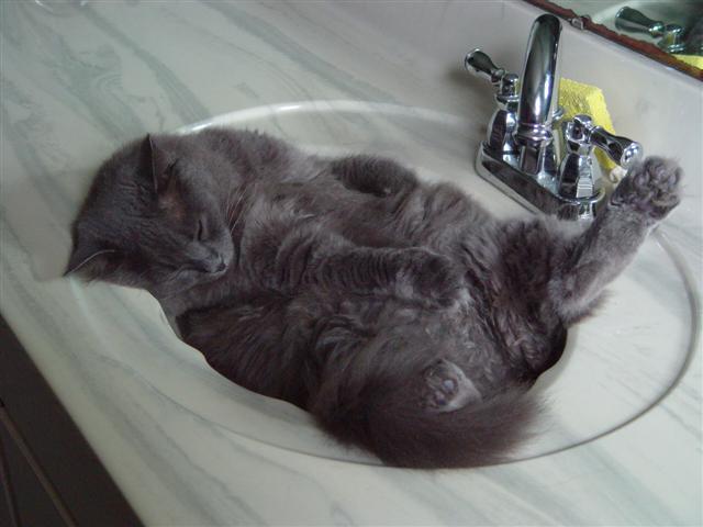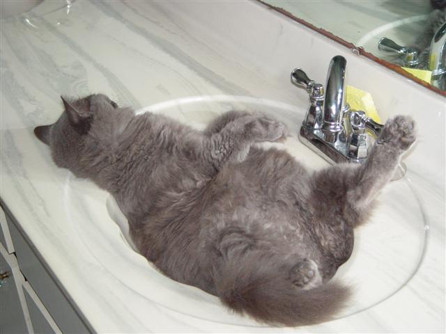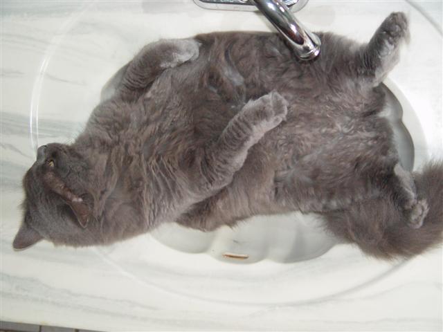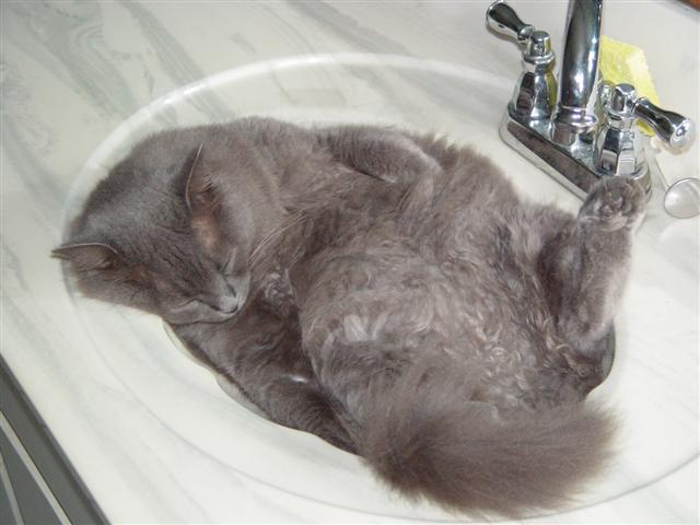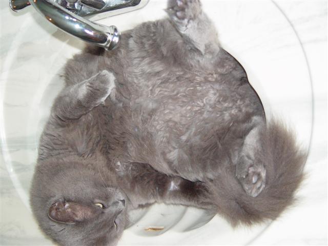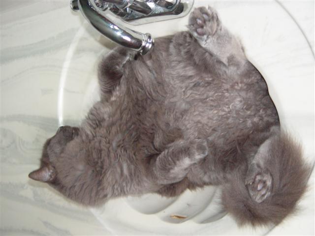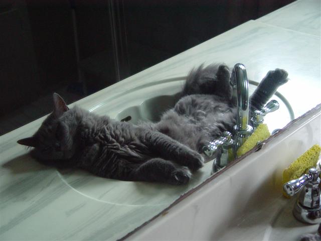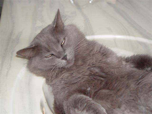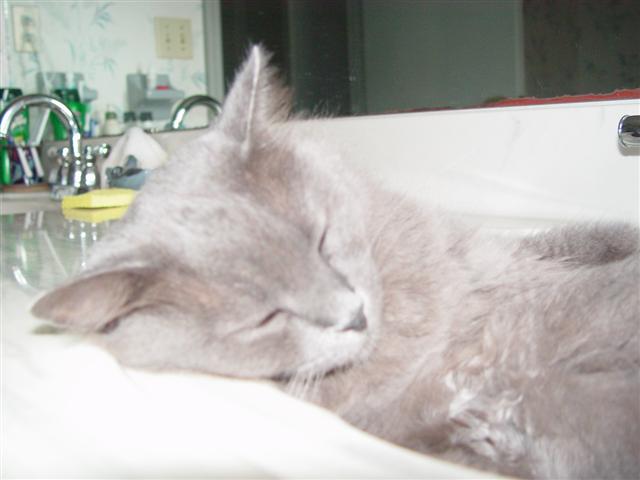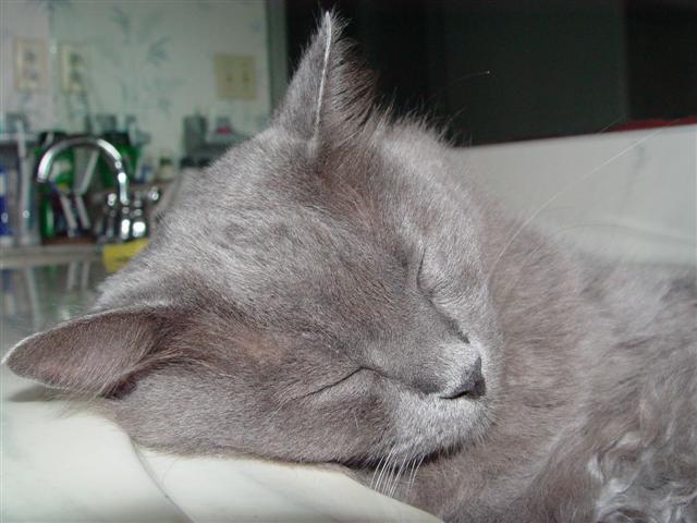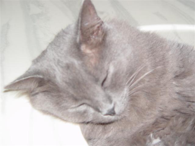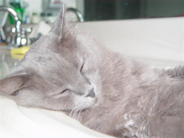 The long hair grey cat came to us after Hurricane Jeanne (the 3rd hurricane to hit Florida in 2004). She was hurt and starving. Her body was a bunch of bones covered by her long grey fur. Here is a picture of her little paws ( click here to see - they are to horrible to post). We called the best Cat Doctor in Florida and he got us the meds to treat her paws. Sky Angel recovered completely and has been a wonderful addition to our family of cats.